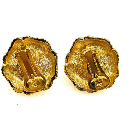 Vintage 1990's Imitation Pearl Abstract Flower Clip On Earrings