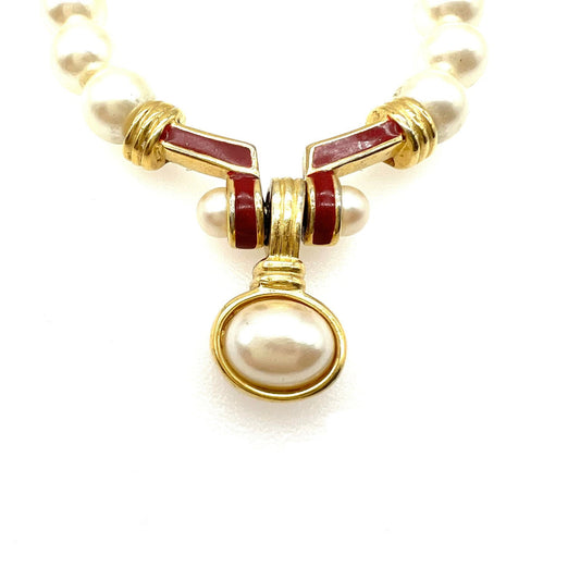 Richelieu Faux Pearl Necklace with Integral Enamel Pendant