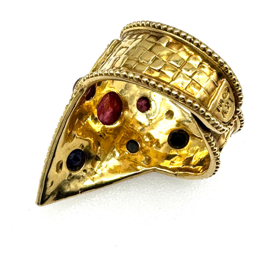 Ilias Lalaounis 18ct Gold Sapphire and Ruby Mosaic Byzantine Ring 8.1g