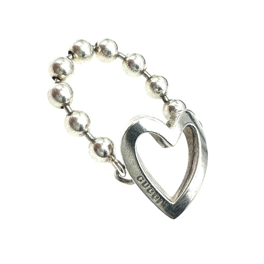 Gucci 925 Boule Heart Ring Size UK P / US 7.5 In Original Gucci Brown Velvet Logo Pouch and Original Gucci Branded Brown Box