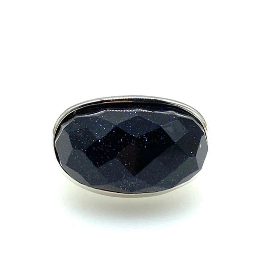 ELLE 925 Silver Rhodium Plated Faceted Purple Goldstone Ring with Ruby Trademark