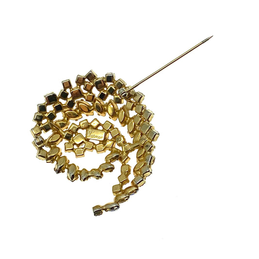 Gustave Sherman, a Canadian jewelry salesman, founded Sherman Costume Jewelry in Montreal in 1947. Using Swarovski crystals, his designs were highly crafted, expensive and sold at exclusive boutiques. His fluid designs with navettes and elongated marquis shaped crystals in monochromatic schemes were highly sought after. His figural brooches are also popular with collectors.