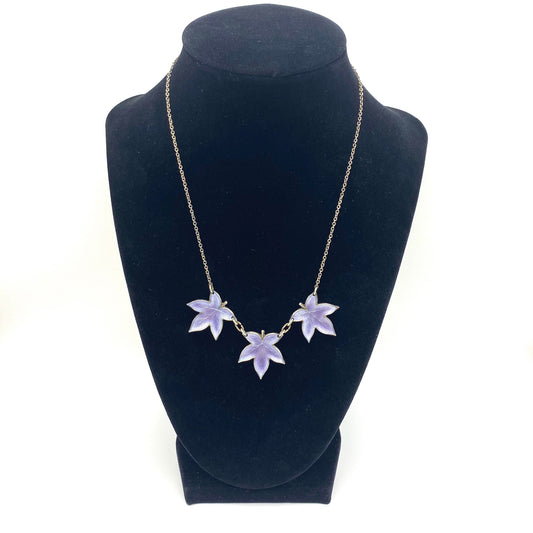Nils Martin Elvik 1940's Norwegian Silver Gilt Enamel Three Lilac Leaf Necklace