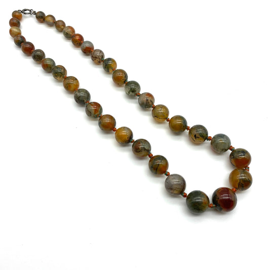 Moss Agate 1940's Graduated Hand Knotted Necklace 46cm