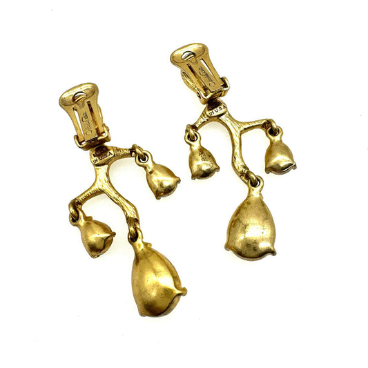 Oscar De La Renta Made In USA Crystal Chandelier Dropper Clip On Earrings