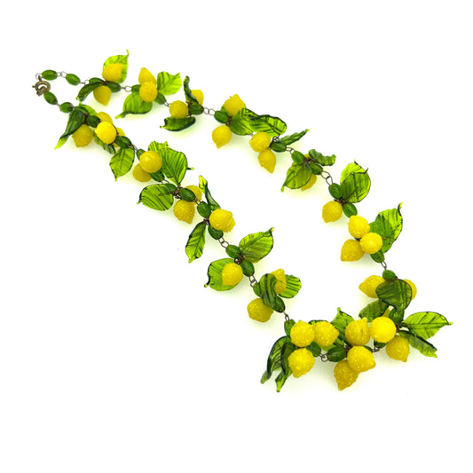 Venetian Murano Sugar Glass Lemon and Leaves Necklace Circa 1930's/40's