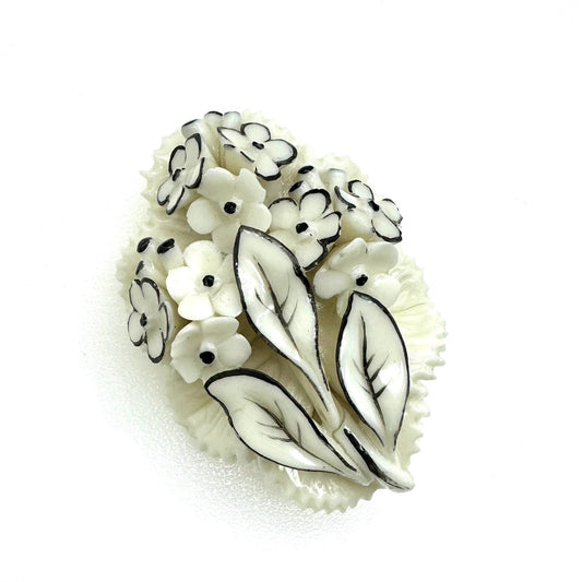 Rare 1932-33 Royal Worcester Fine Bone China Handmade and Hand Painted Flower Spray Brooch with Rolled Gold 'C' Clasp