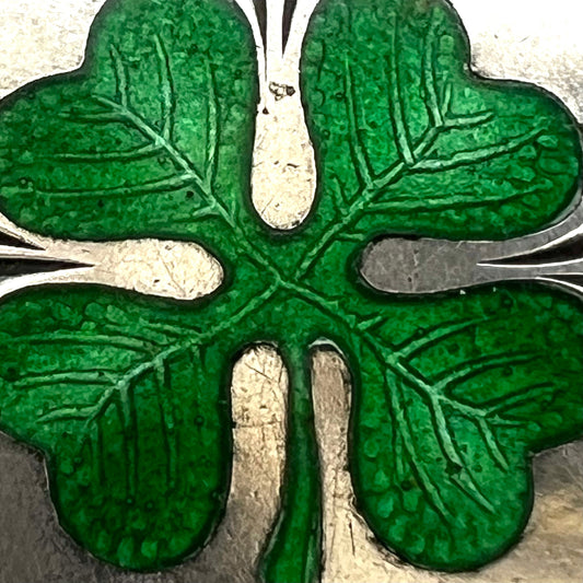 Antique 800 Silver Unmarked Austrian or Hungarian Love Token Four Leaf Clover Enamel Charm Pendant