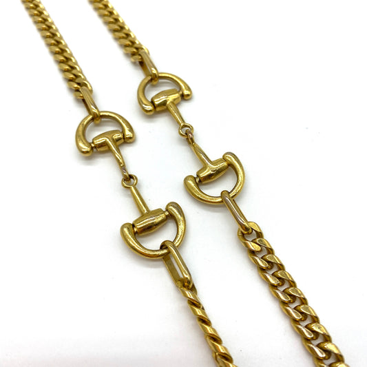 A Snaffle Horse Bit Gold Tone Curb Chain Necklace