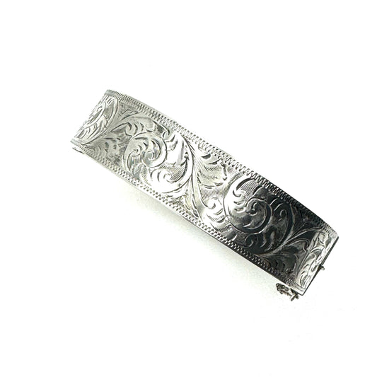 1942 Chester Engraved Silver Hinged Bangle