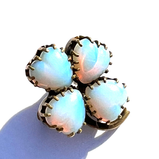 Antique Four Leaf clover with Opalite Glass Hearts