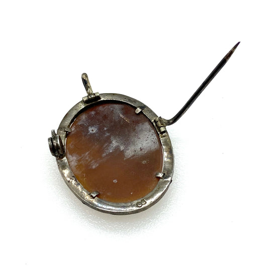Cupid and Psyche European 800 Continental Silver Marcasite Shell Cameo Pendant/Brooch
