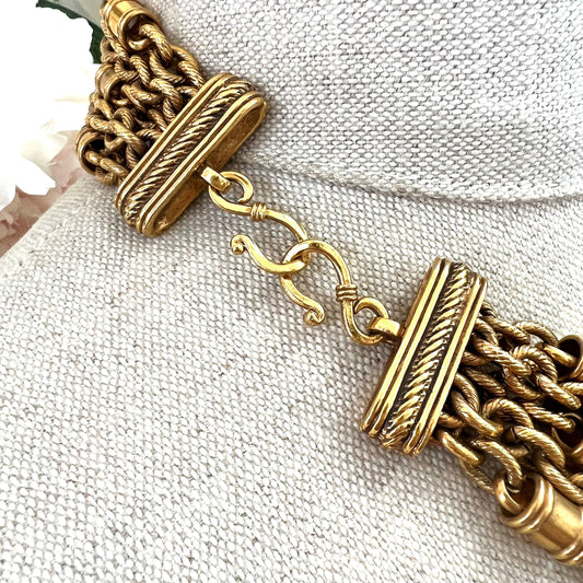 1980's Five Strand Cable Chain Barrel Link Double 'S' Clasp Necklace