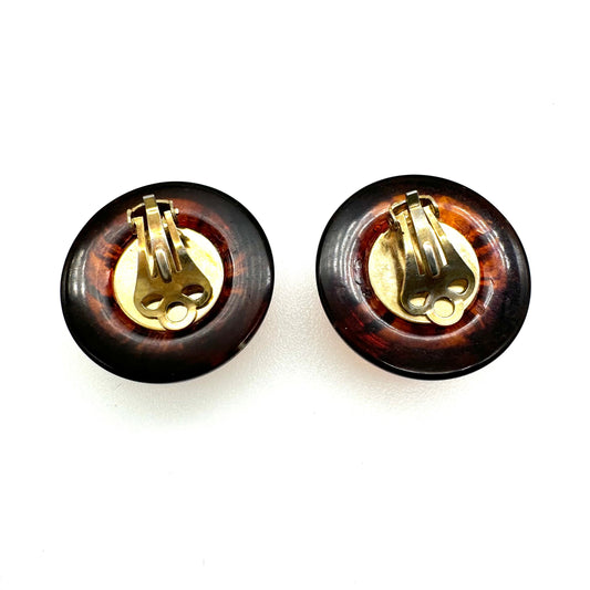 Vintage 1960's Round Domed Faux Cognac Amber Plastic Clip On Earrings