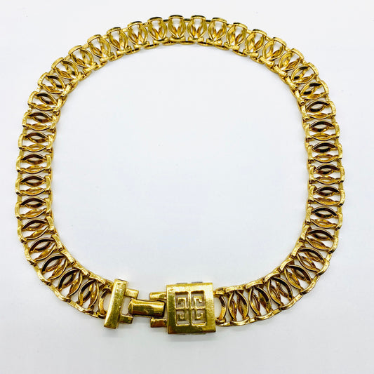 West Germany Signed Herringbone Chevron Link Necklace