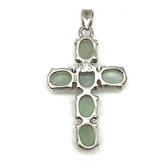 Silver and Jade Oval Cabochon Cross Pendant