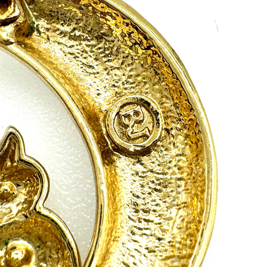 BJ 'Beatrix Jewelry' Rhinestone Owl in Enamel Crescent Moon Brooch
