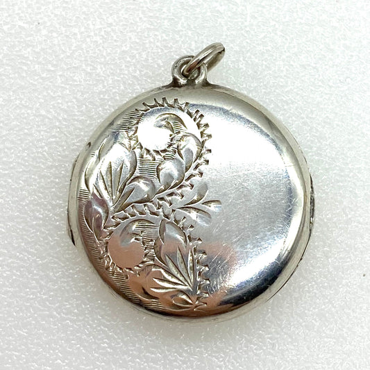 Sterling Silver Round Locket with Foliate Engraving