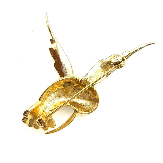 Unsigned Humming Bird Rhinestone and Enamel Brooch