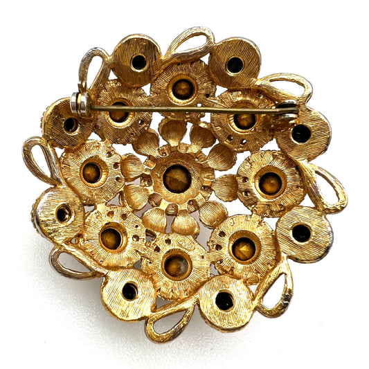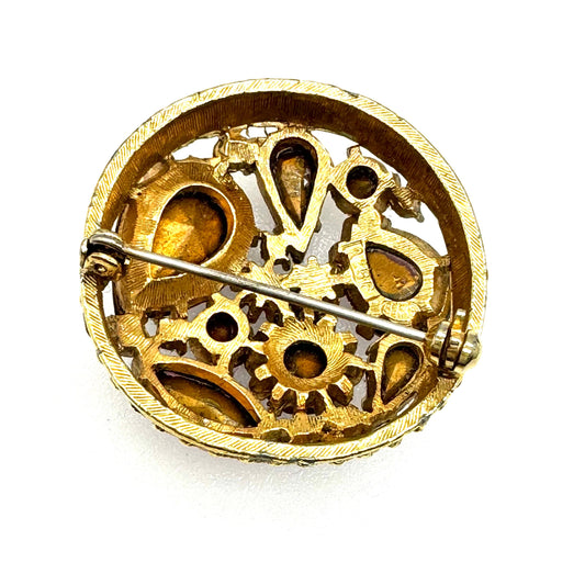Sphinx Large Domed Rhinestone Cannetille Brooch