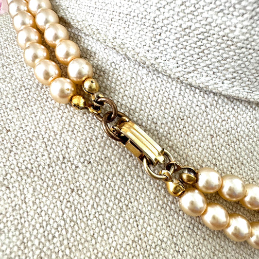 Sphinx Two Strand Faux Pearl Necklace with Integral Heart Pendant