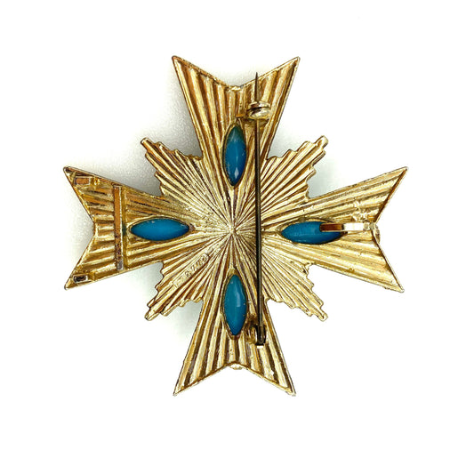 Unsigned Sphinx Maltese Cross Brooch/Pendant with Faux Turquoise and Imitation Pearl Signed 9229