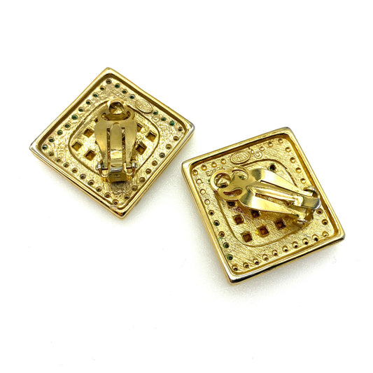Sphinx Huge Square Rhinestone Clip On Earrings