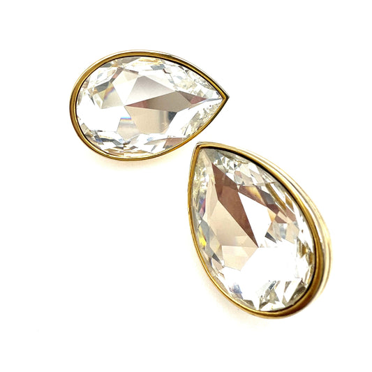 Sphinx Statement 1980's Large Teardrop Shaped Faceted Glass Clip On Earrings