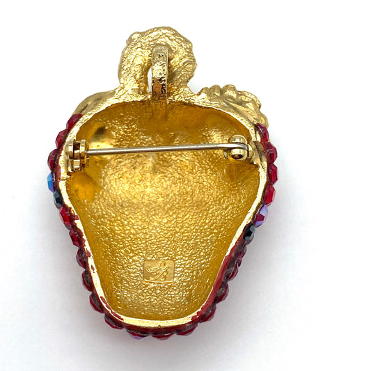 Suzanne Bjontegard Ruby Rhinestone Aurora Borealis Strawberry Pendant/Brooch