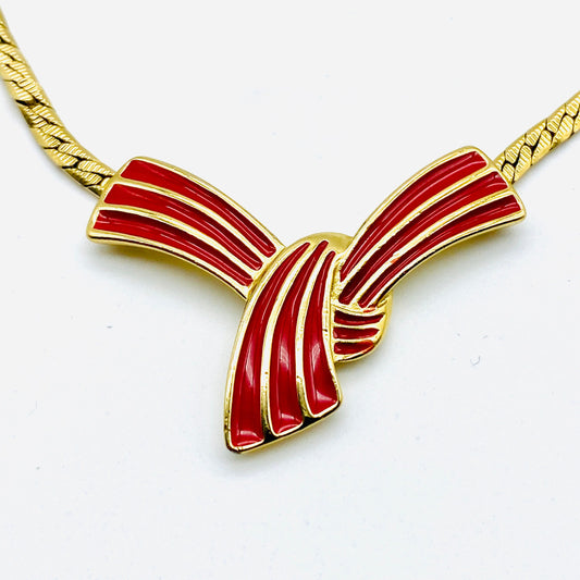 Trifari Red and Gold Enamel Bow Necklace