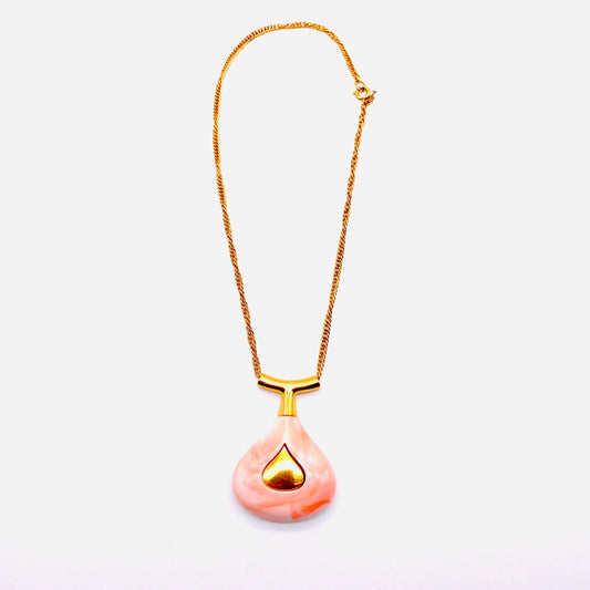 Trifari Coral Toned Lucite Pendant on a Chain