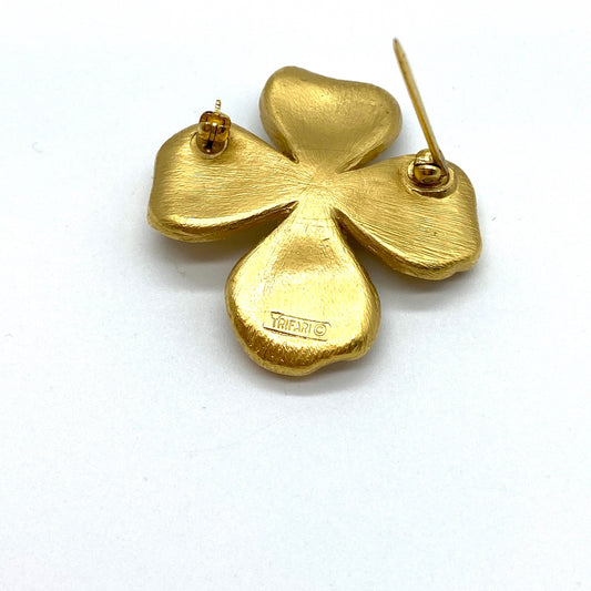 Trifari Dogwood Flower Gold Plated Pin Brooch
