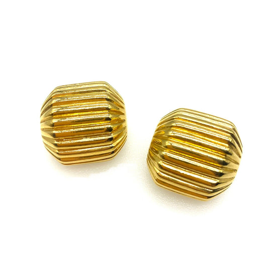 Trifari Ribbed Square Domed Pierced Earrings with Original Backs