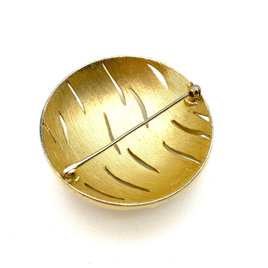 Crown Trifari Round Domed Gold Tone Brooch