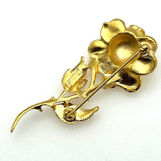 Crown Trifari Gold Plated Single Blooming Rose Brooch