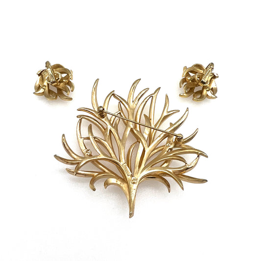 Crown Trifari Swaying Seaweed Brooch and Clip On Earrings