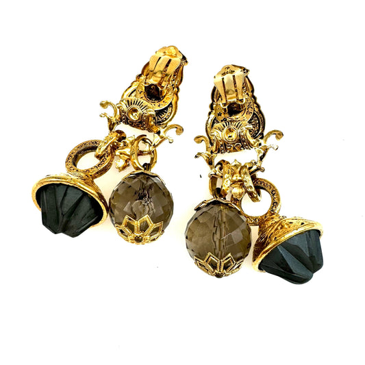 Zoe Coste Reminiscence Paris Smokey Crystal and Opaque Frosted Grey Glass Clip On Earrings