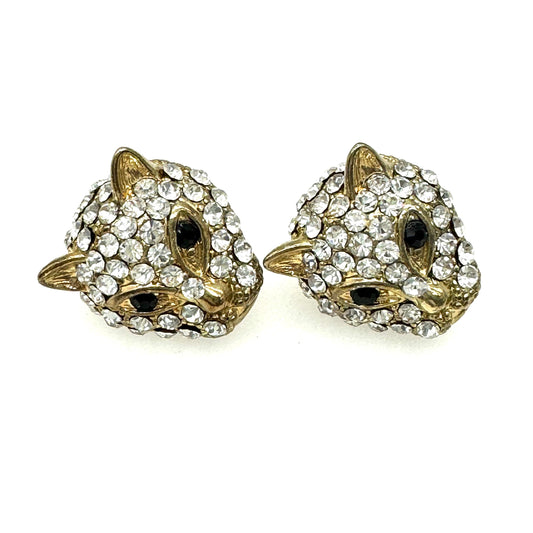 Big Cat / Leopard Head Pierced Rhinestone Earrings with Brand New 925 Silver Backs
