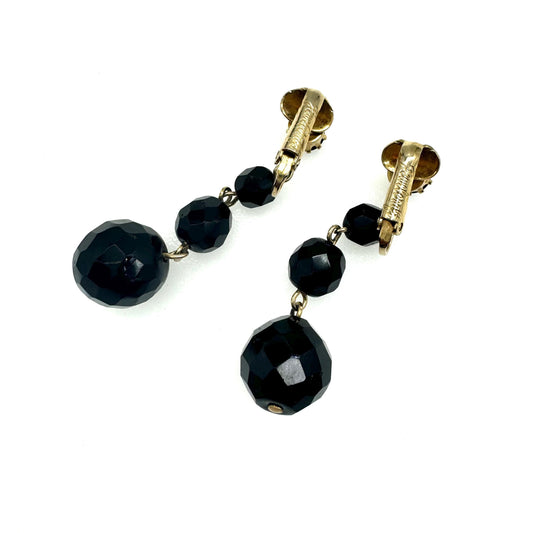 Jewelcraft Graduated Black Faceted Glass Dropper Clip On Earrings