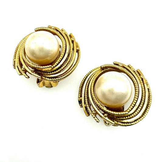 Orena French Faux Pearl Swirl Clip On Earrings