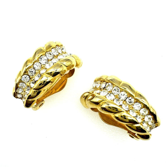 Vintage Demi Hoop Pave Set Crystal Clip On Earrings
