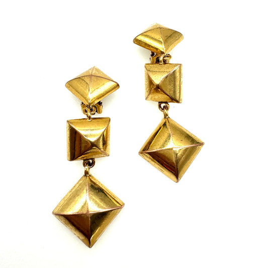 Oscar De La Renta Made In USA Dangle and Drop Pyramidal Squares Clip On Earrings
