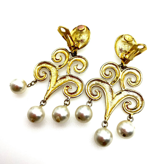 Signed West - Cannetille Design Faux Pearl Clip On Earrings