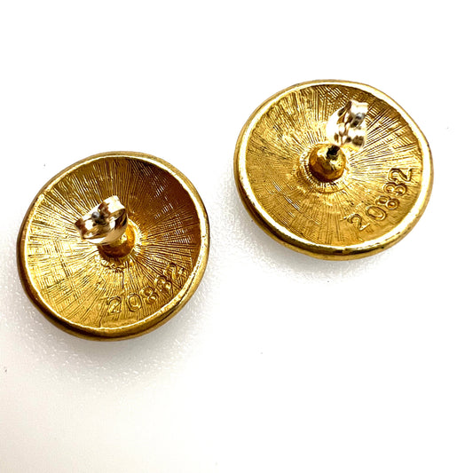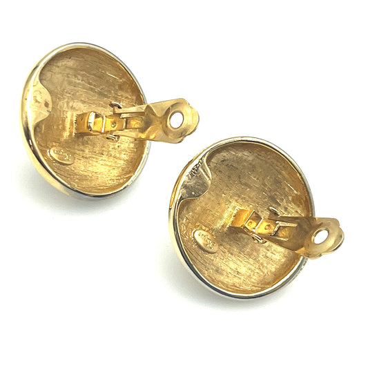 Boucles d'oreilles à clip en forme de croix ronde plaquée or et émail noir non signées
