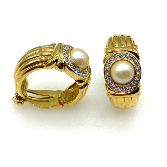 Crystalline Jewelry Company (Pranda) Gold Plated Faux Pearl and Rhinestone Clip On Earrings