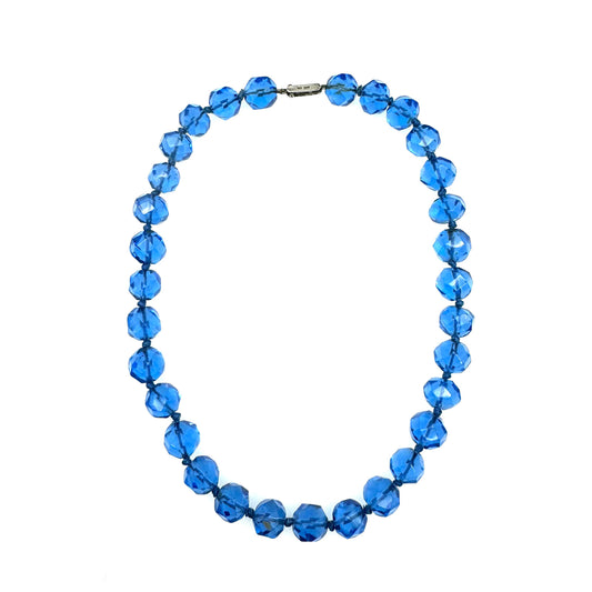 JKa of Pforzheim 935 Silver Art Deco Cornflower Blue Hand Faceted Glass Bead Necklace