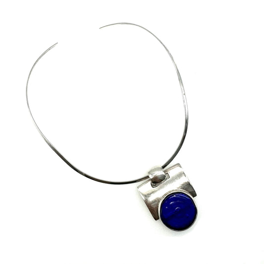Mexico 925 Silver Cobalt Blue Dichroic Glass Pendant Torque