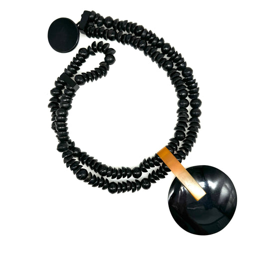 Black and Orange Resin Two Strand Bead Necklace with Integral Disc Pendant