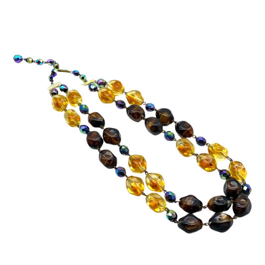 Verre d’agate à bandes moulées lourdes, verre de citrine et collier de perles à deux brins en verre à facettes noires