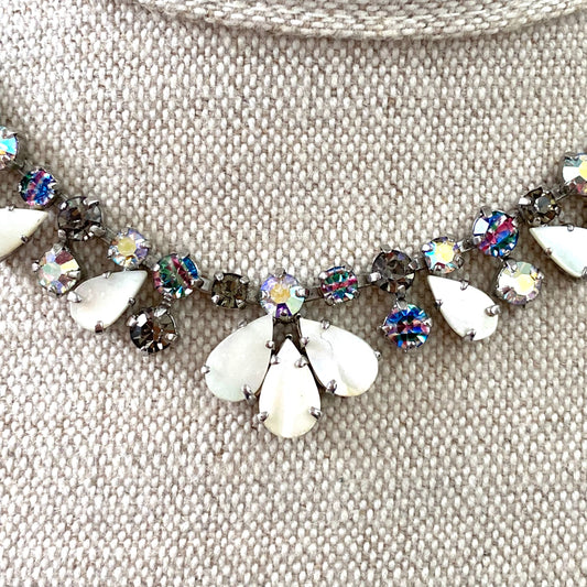Collier en nacre AB strass et verre iris
